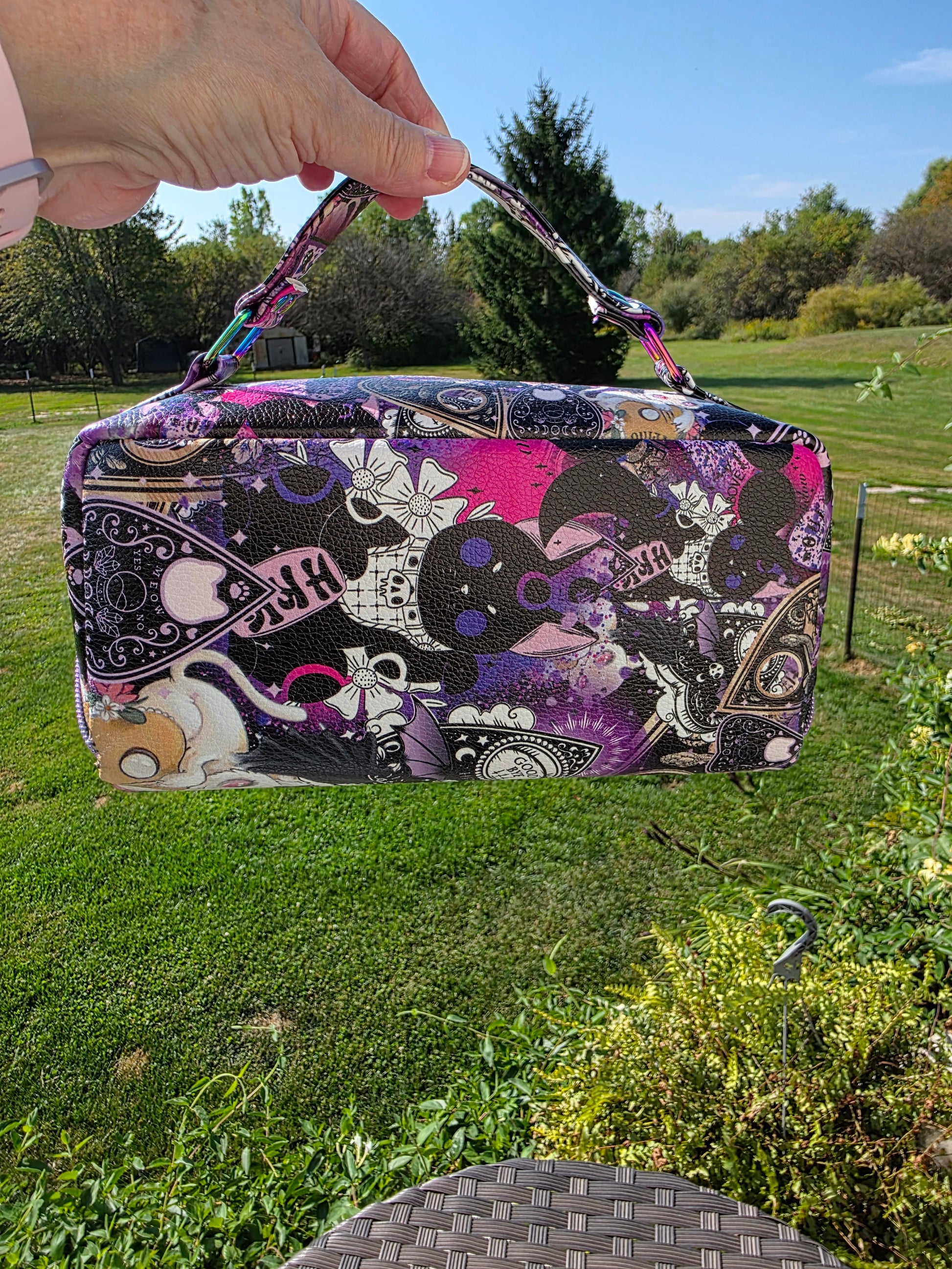 Ouija boards, cats Makeup bag or crochet bag. Rainbow Hardware